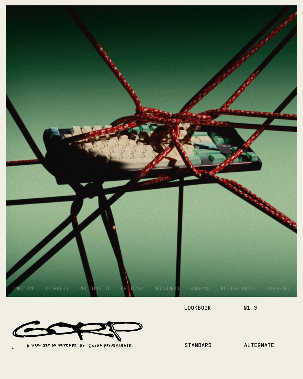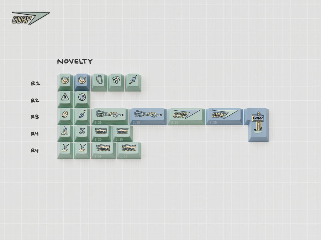 Gorpcoreと呼ばれるアウトドアアイテムを取り入れたファッションムーブメントからインスピレーションを得てデザインされたキーキャップセットです。EXTRAPRIUSPLEASE氏が特にお気に入りの一着である日本のアパレルブランド「ビームス」とカナダの名門アウトドアブランド「アークテリクス」がコラボした Beta SL Patchwork というアイテムが色合いのイメージとなっています。 落ち着いたカラーのスタンダードキットはもちろん、焼きマシュマロや焚火、看板などアウトドアを彷彿とさせる可愛らしいノベルティキーキャップも魅力的です。 デザインを手がけた