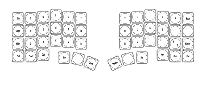 キー配列「Cornix 3×6」をベースに設計されており、左右分割構造のコンパクトなレイアウトに最適化されています。