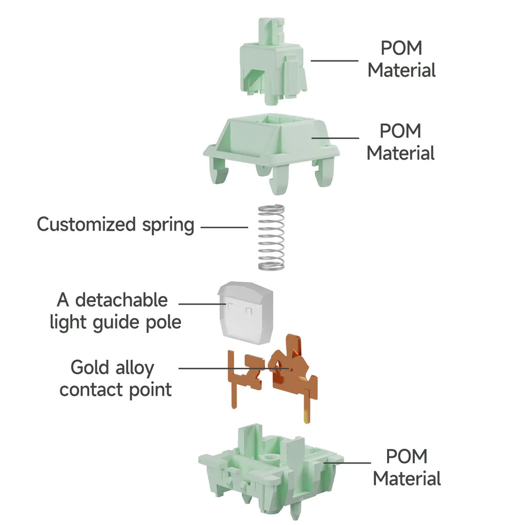 サイレントスイッチで珍しいフルPOMハウジングを採用し、Smoothieスイッチの滑らかさをそのままに静音性がプラスされました。